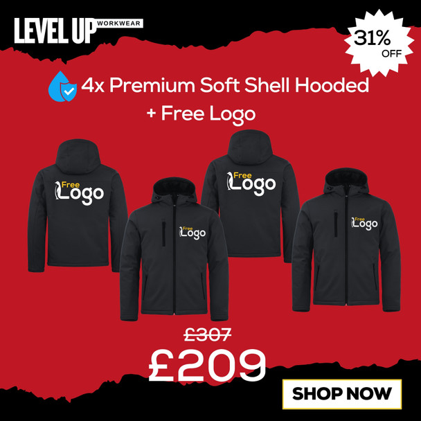 evel Up Workwear Deal 5 – 4x Premium Clique Soft Shell Hooded Jackets – £209